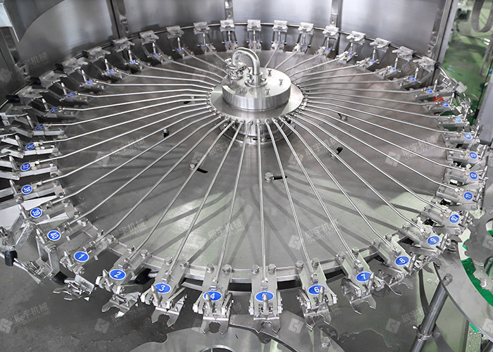 1.進入瓶道的是與瓶刻度盤直接連接的空氣輸送裝置2.所有304/316不鏽鋼清洗頭,噴水式注水設計,節約用水,更清潔