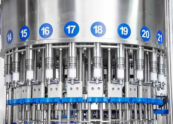 飲用水灌裝線主要適用於瓶裝礦泉水、純淨水、飲用水等灌裝。飲用水男女叼嘿视频的出瓶撥輪瓶底托采用螺旋下降方式,變換瓶型無需調整出瓶輸送鏈高度。飲用水男女叼嘿视频的風送道與進瓶撥輪直連,采用了具有創新功能的具有分瓶功能的瓶口夾持機構,省掉了進瓶螺杆及輸送鏈。飲用水男女叼嘿视频的衝瓶機配備高效噴霧噴頭,衝洗徹底並節省衝瓶水,鋼夾交接、無導板,避免瓶壁劃傷。